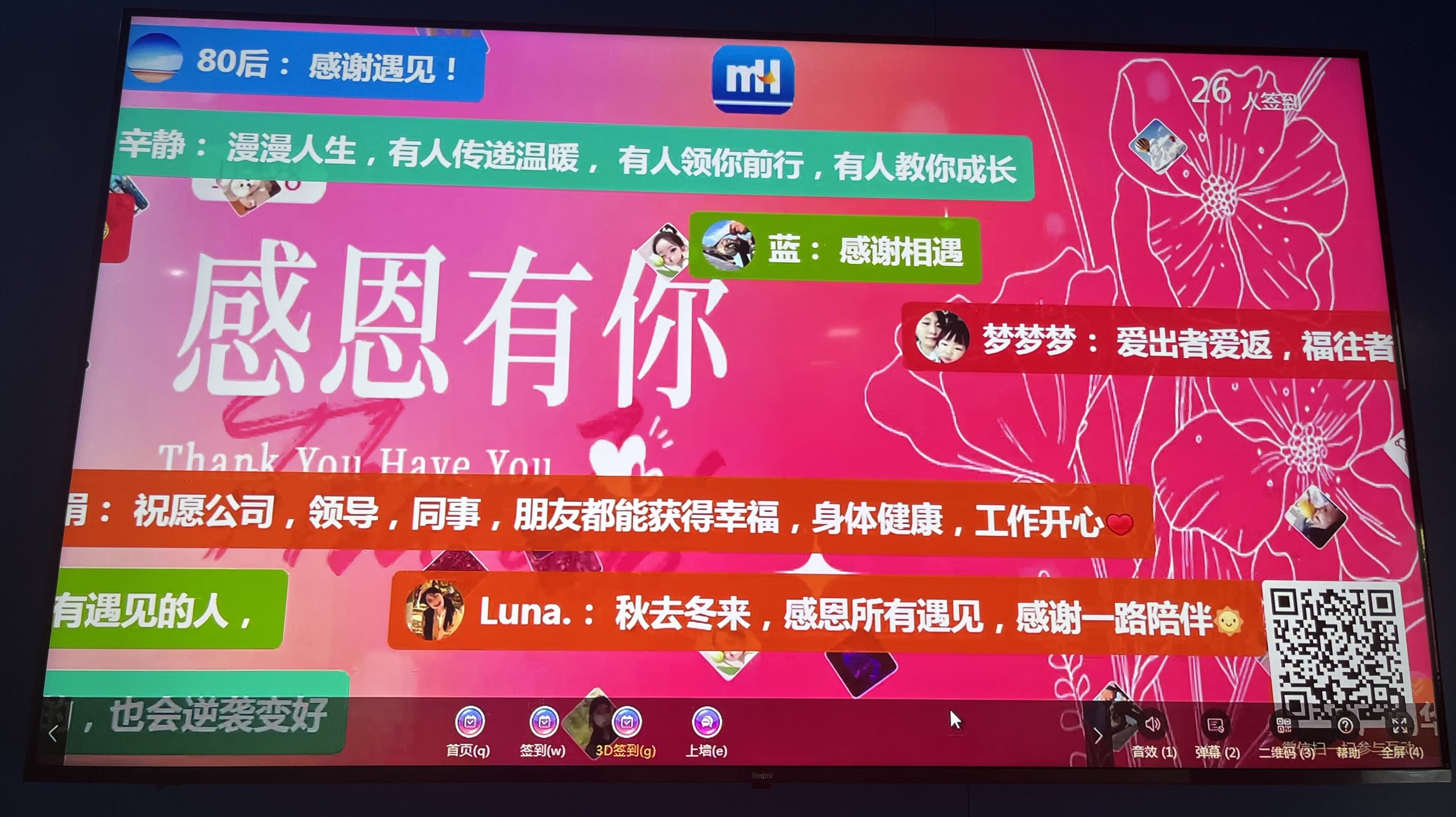 公司一樓大屏幕成為情感的交流站,小伙伴們?cè)诰€上刷了一波“存在感”,有感恩同事的、感恩家人的、感恩客戶的……真摯的感恩語(yǔ)錄如涓涓細(xì)流匯聚其上。午休時(shí)分,大家興致勃勃地邀請(qǐng)感恩對(duì)象一同參與趣味游戲,彼此配合,歡聲笑語(yǔ)回蕩在公司每個(gè)角落,獲勝后那精美的禮品更是增添了幾分喜悅。感恩之心,溫暖而明亮,照亮你我前行的路。